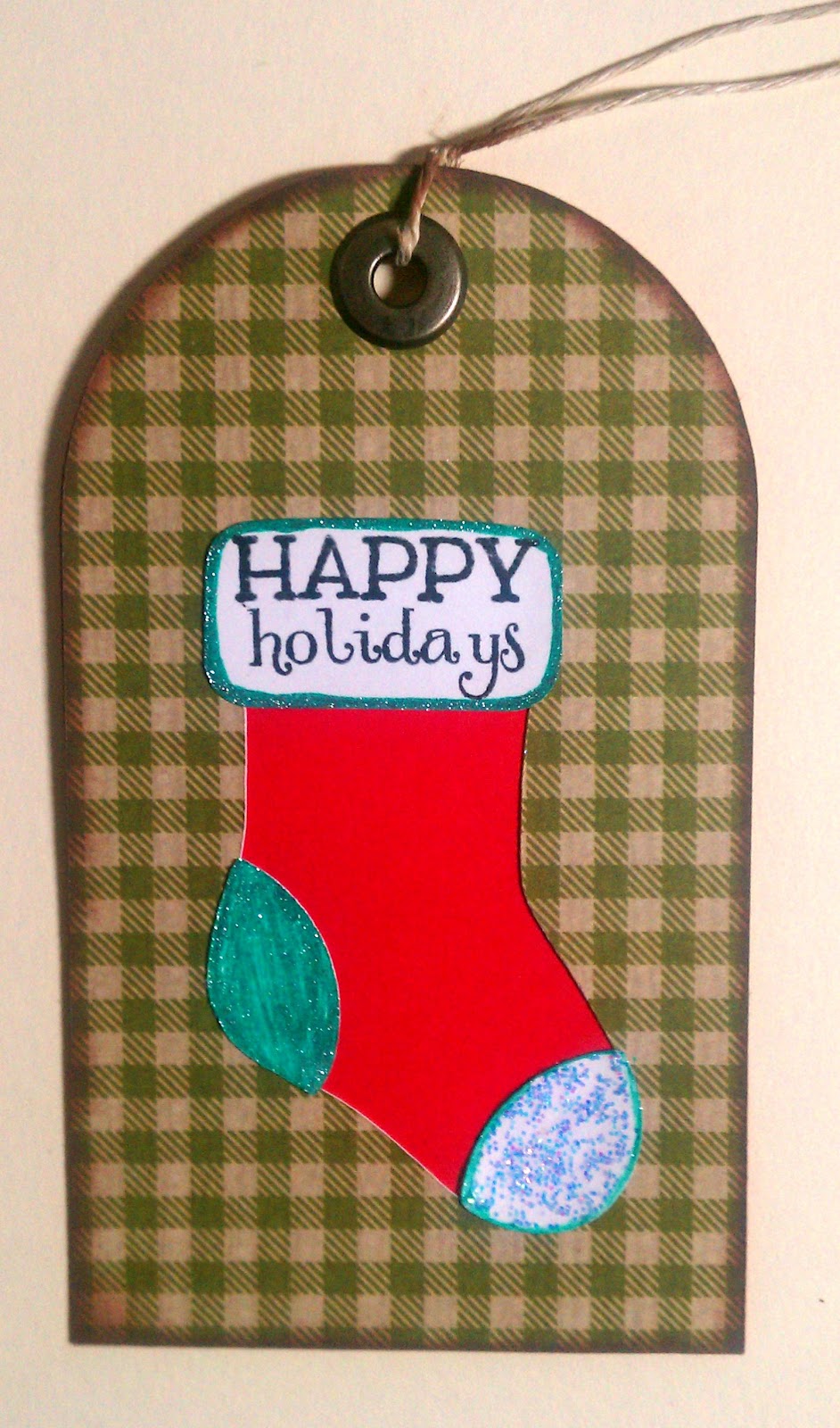 Oh Christmas Tree, Oh Christmas Tree, How lovely are thy colors. This one I think is my favorite of the tags. I used my iRock to glue the colored gems as the decor for the tree. I put stickles on the star and around the frame of the tag. Sentiment is from MCT - All Around Christmas.